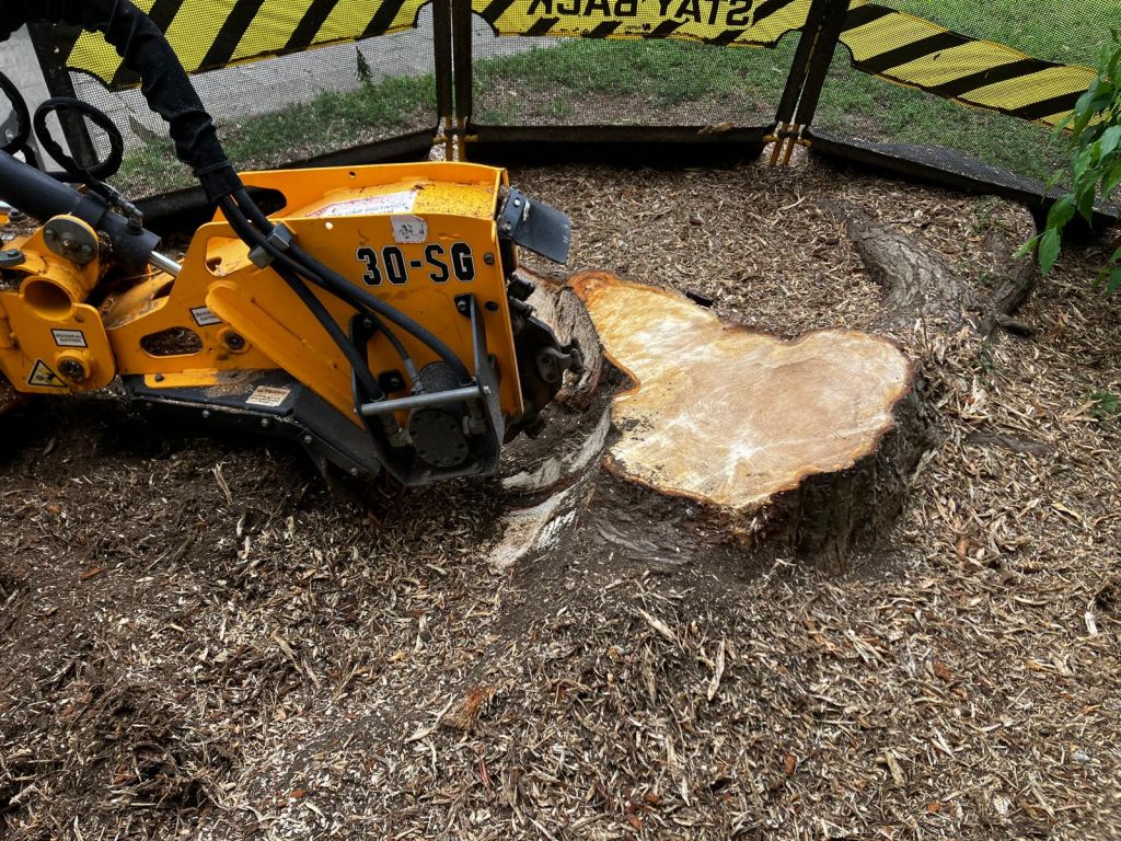 Réduction de la souche avec une rogneuse, rapide et efficace.
